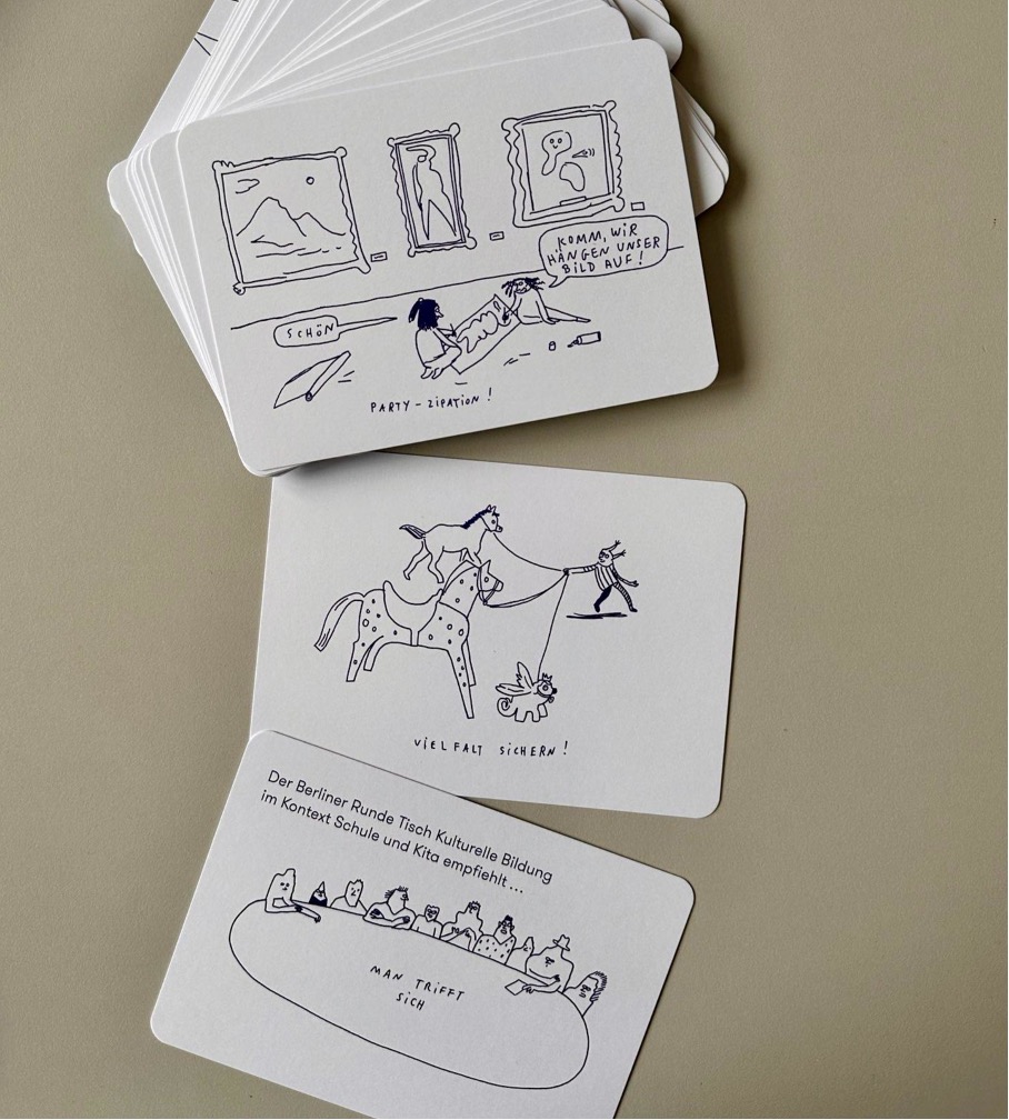 Seit Herbst 2024 arbeiten Vertreter*innen aus den Programmen der Kulturellen Bildung Berlins, aus Schule und Kita, Wissenschaft und Zivilgesellschaft im Dialog mit Politik und Verwaltung im Berliner Runden Tisch Kulturelle Bildung im Kontext Schule und Kita (BeRuTiKuBi) zusammen.